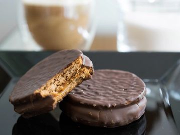 Alfajor Argentino relleno de dulce de leche y cubierto de chocolate.